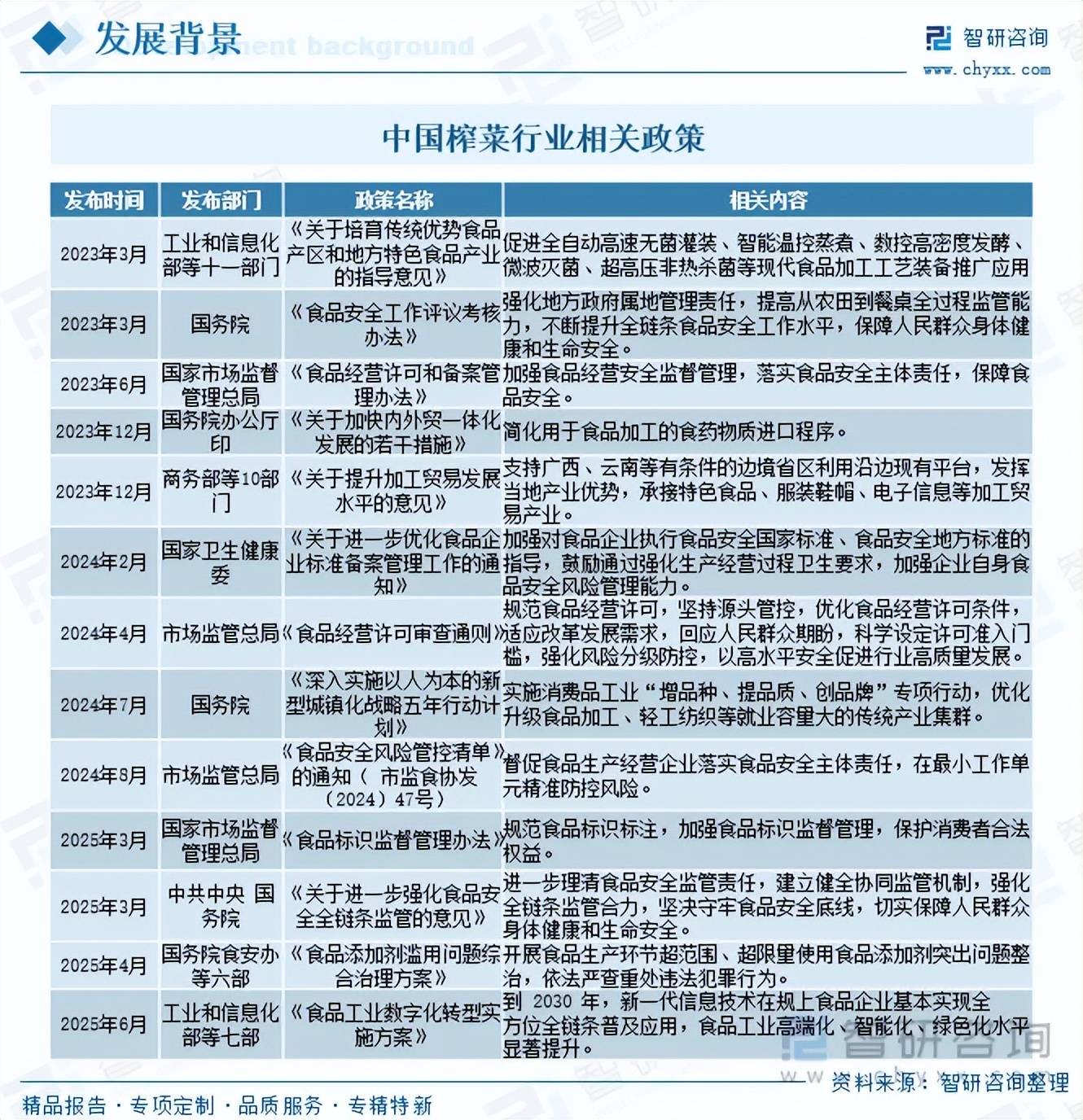 注:本文节选出自智研征询发布的《研判2026!榨菜能够分为保守发酵榨菜、脱盐榨菜、速成榨菜、调味榨菜等类型。高质量标的目的成长。目前,